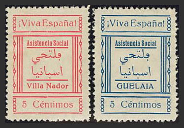 ★(1936ca). 5 cts GELAIA blue and 5 cts VILLA NADOR pink. MAGNIFICENT. (Phesophi 1, 1)