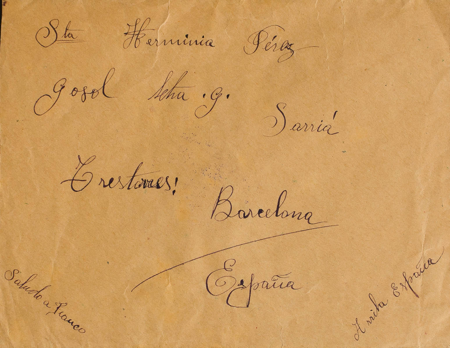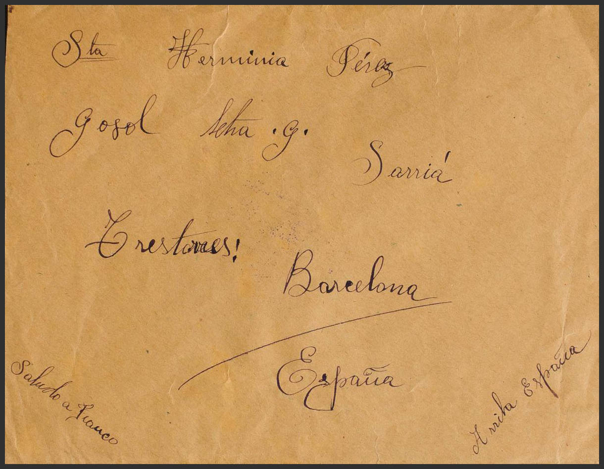 (1938ca). LANGRES (FRANCE) to BARCELONA, sent by a Spanish woman in Campo de Langres. On the back franchise mark SOUS-PREFECTURE DE LANGRES / (HAUTE MARNE), in violet. MAGNIFICENT.