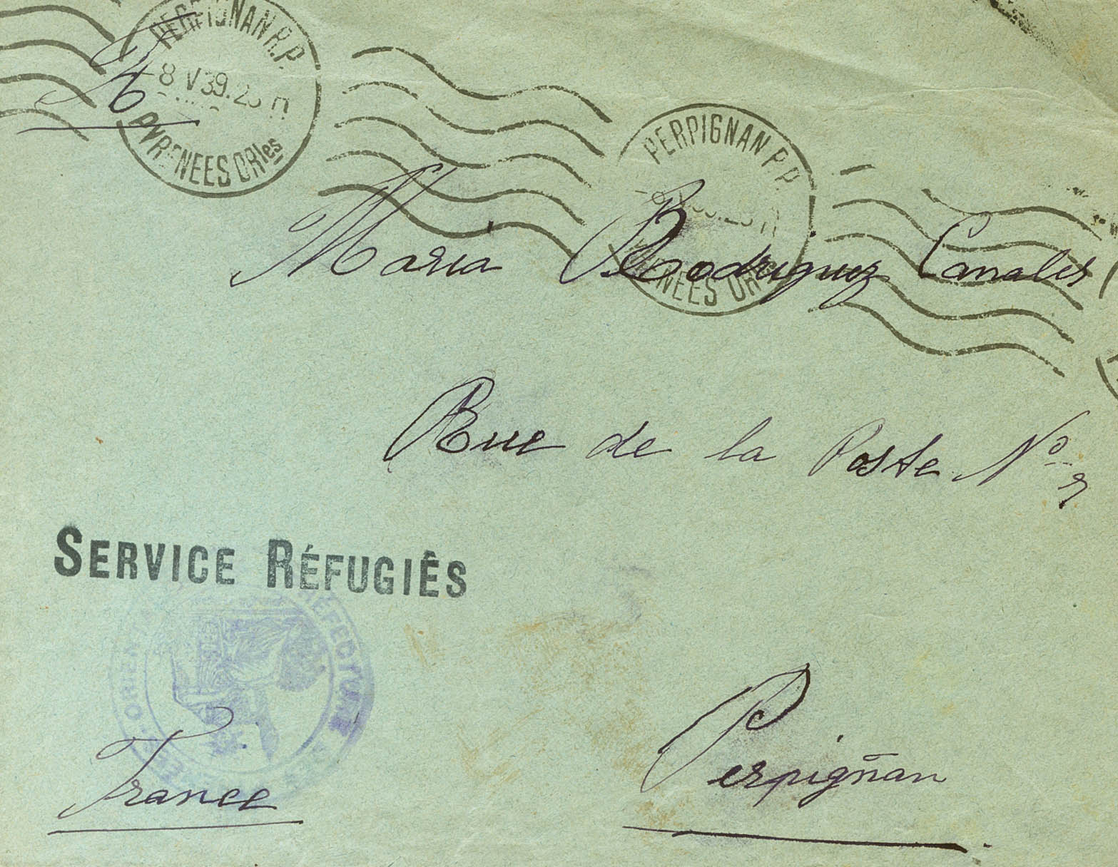 |ABOUT|1939. MACON to PERPIGNAN, sent by a Spanish refugee interned, most likely temporarily, at the Lambert Barracks in Macon. On the front, marks PREFECTURE DES PIRENEES ORIENTALES and SERVICE REFUGIES. MAGNIFICENT AND RARE.