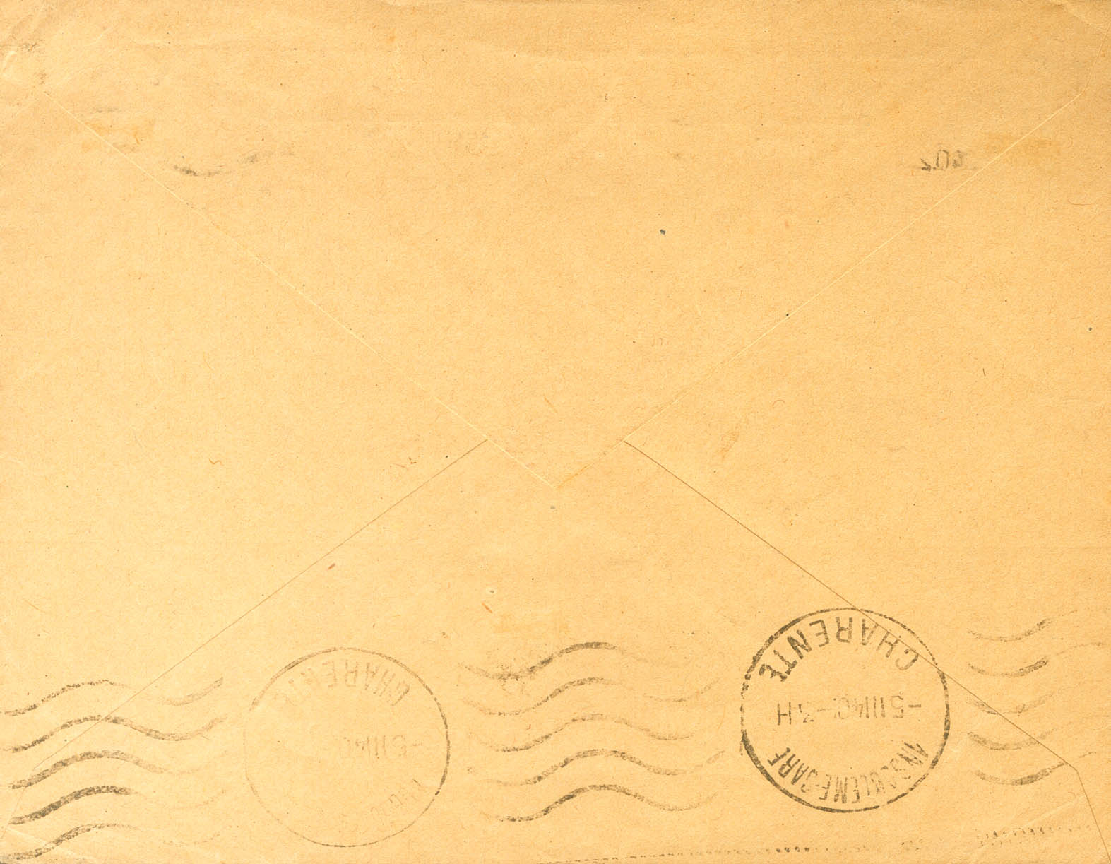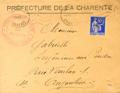 |ENVELOPE|1940. 90 cts blue from France, surcharge F. Interior Mail from ANGOULEME, most likely sent from the "Alliers Camp", which was used until September 1940, to intern Spanish refugees. On the front marks PREFECTURE DE LA CHARENTE / CENTRE / DES / REFUGIES / COMMISSARIAT SPECIAL, on the back arrival. MAGNIFICENT AND RARE.