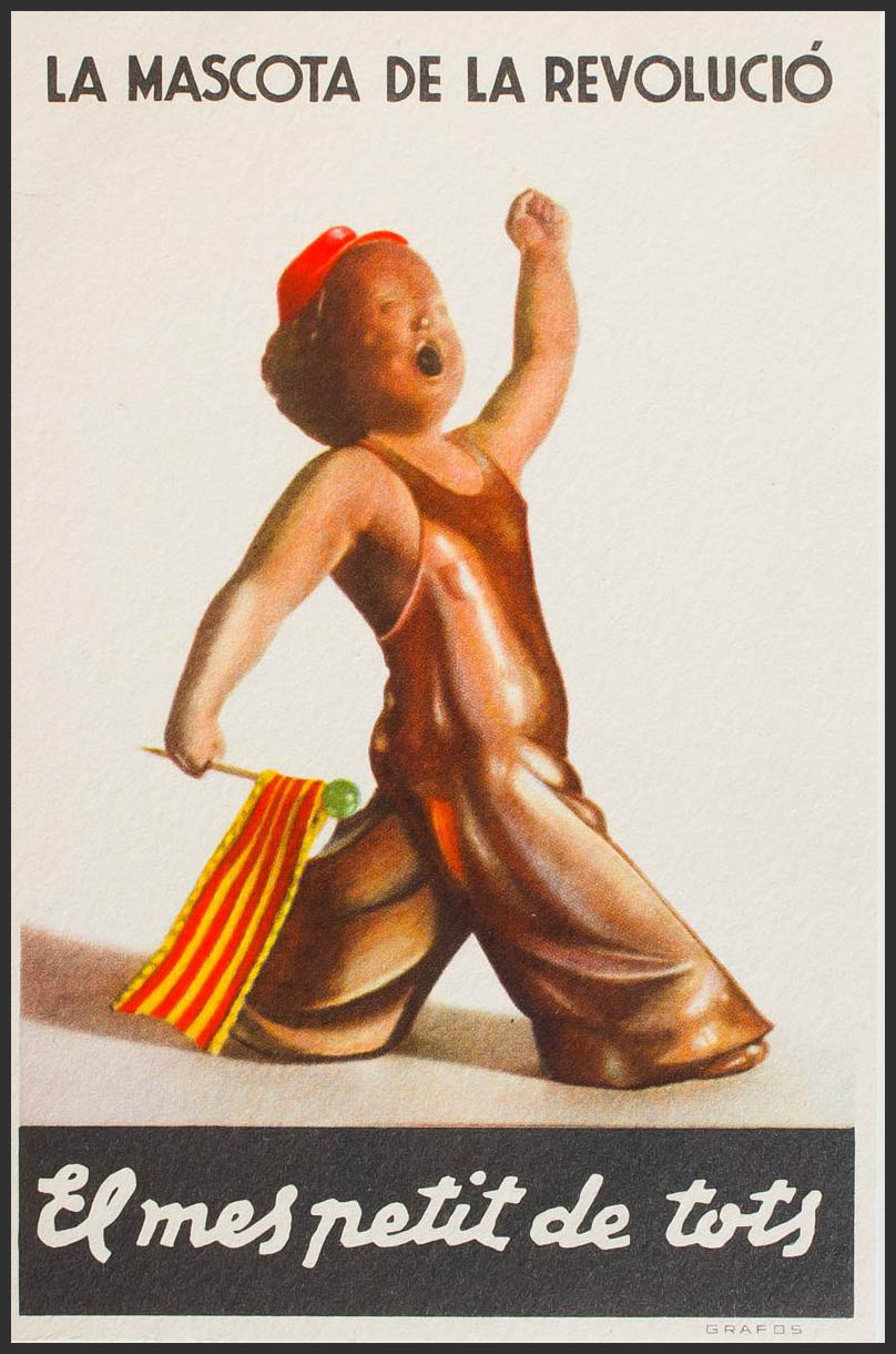 English (1937ca). Illustrated Postcard of the PROPAGANDA COMMISSION OF THE GENERALITAT DE CATALUNYA. THE MASCOT OF THE REVOLUTION. MAGNIFICENT AND RARE.