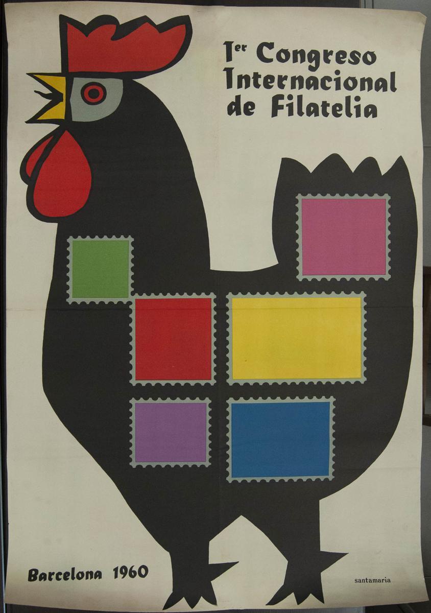 1960. Cartel publicitario 1 CONGRESO INTERNACIONAL DE FILATELIA. Barcelona, 1960.