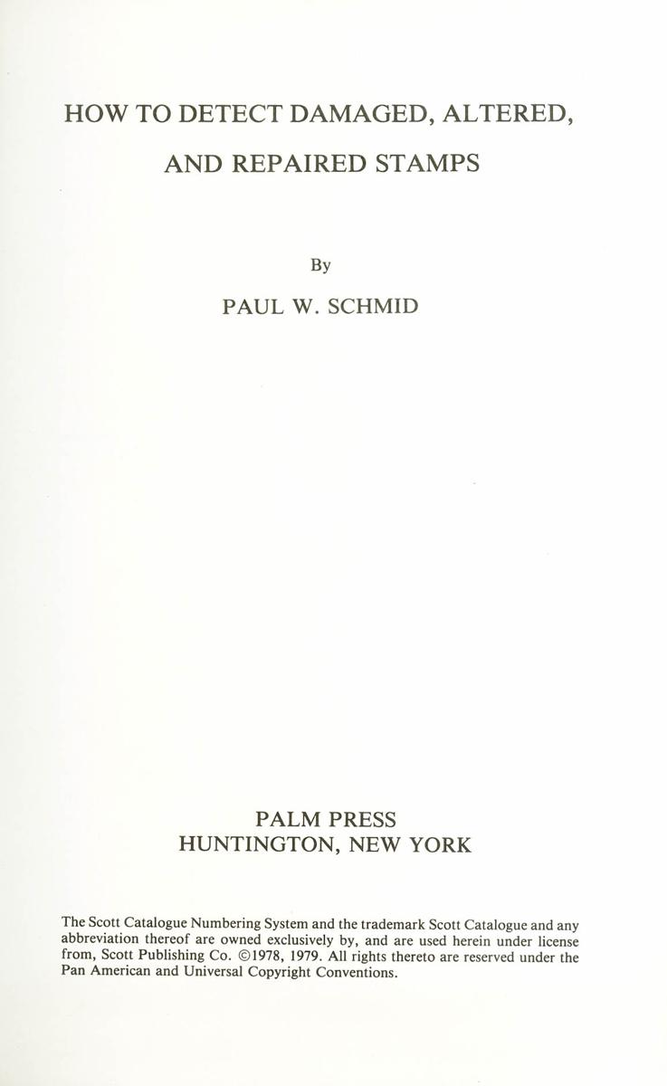 1978. HOW TO DETECT DAMAGED, ALTERED AND REPAIRED STAMPS. Paul W.Schmid. Nueva York, 1978.