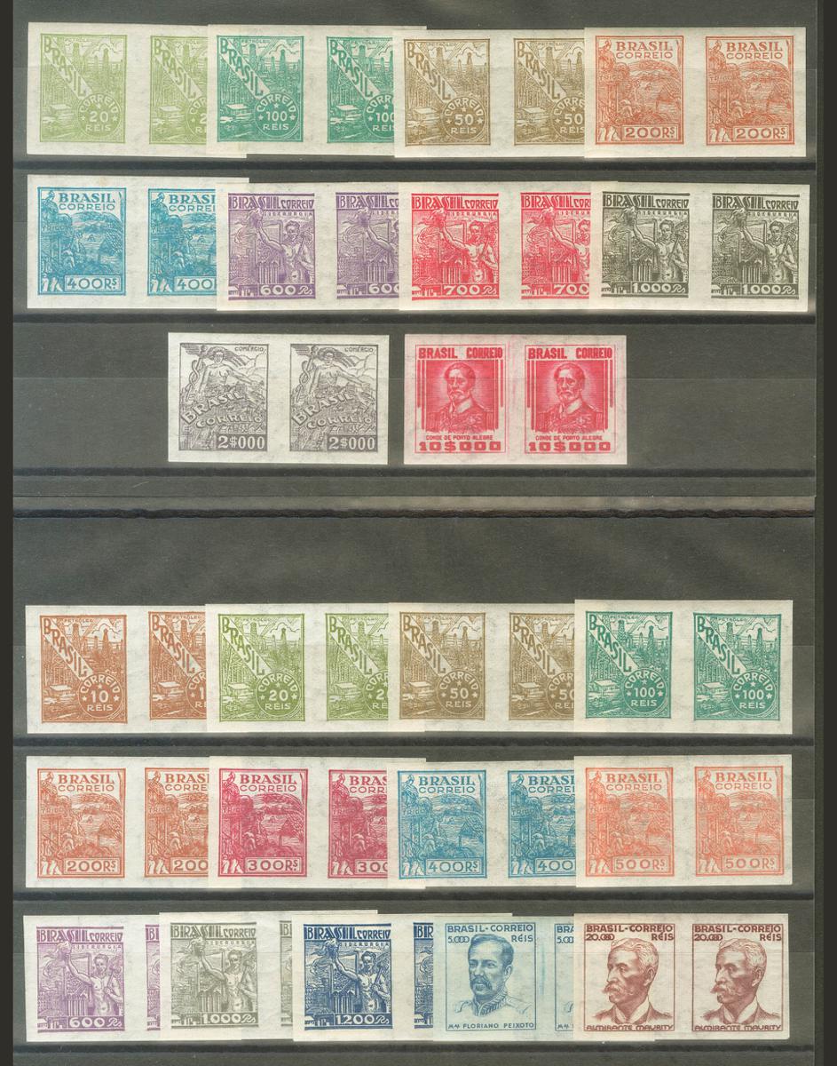 ★★/★1941. Conjunto de veintitrés parejas de diversos valores (con diferentes filigranas y algunos con líneas verdes en el reverso) de la serie "Padrao Milreis" SIN DENTAR. MAGNIFICOS Y RAROS.