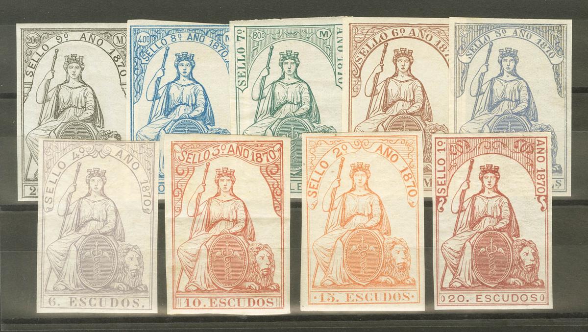 ★/(★)1870. Serie completa, nueve valores. POLIZAS. MAGNIFICA. (Alemany 97/05)