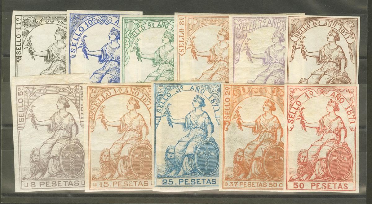 ★/(★)1871. Serie completa, once valores. POLIZAS. MAGNIFICA Y RARA. (Alemany 106/16)
