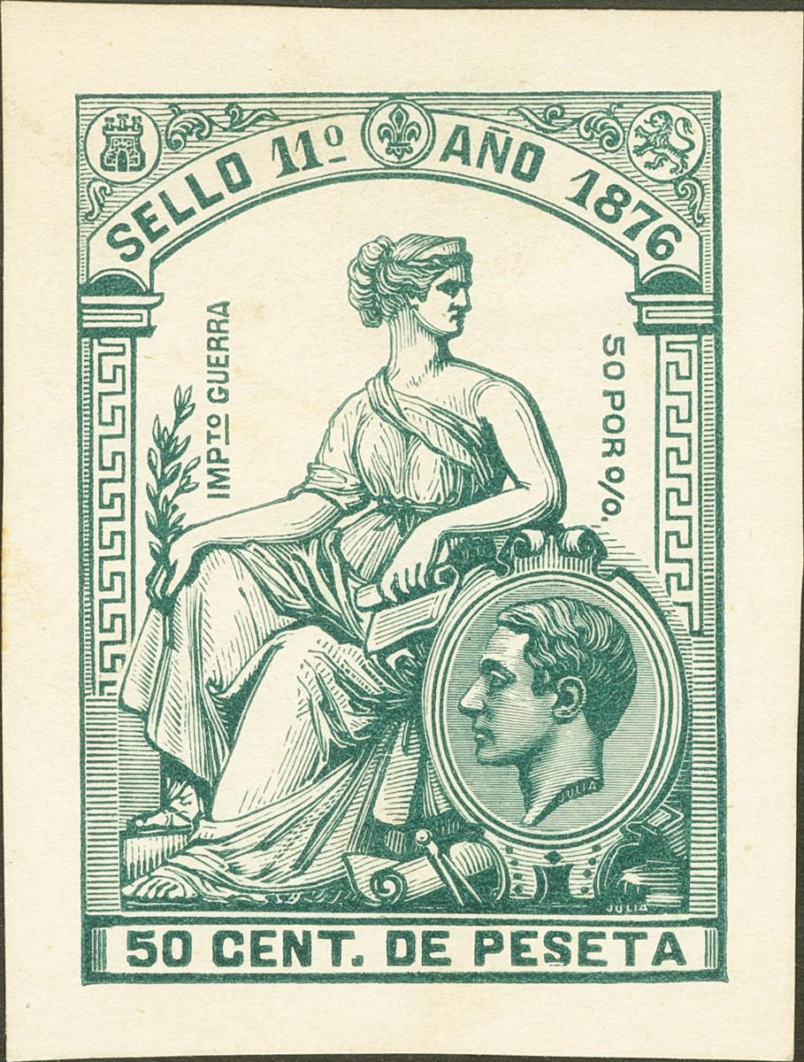 (★)1876. 50 cts verde. PRUEBA DE COLOR. MAGNIFICA Y RARA.