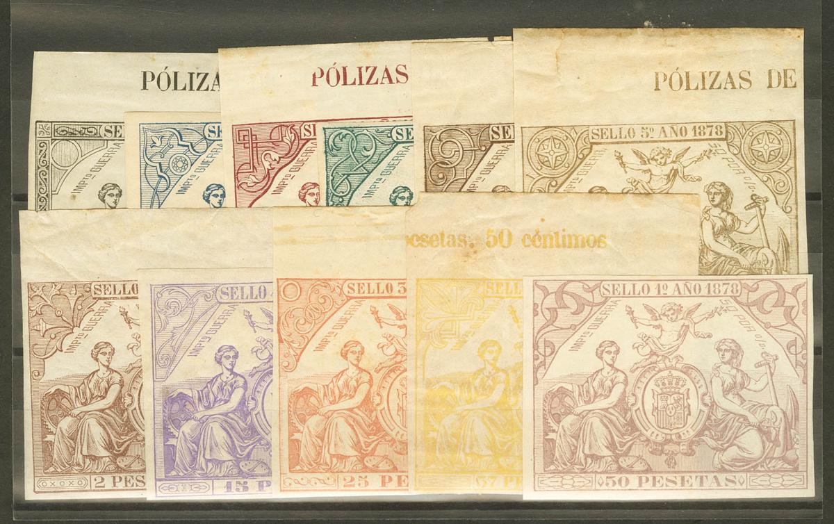 ★/(★)1878. Serie completa, once valores (37´50 pts doblez, sin importancia alguna). POLIZAS. BONITA. (Alemany 195/05)