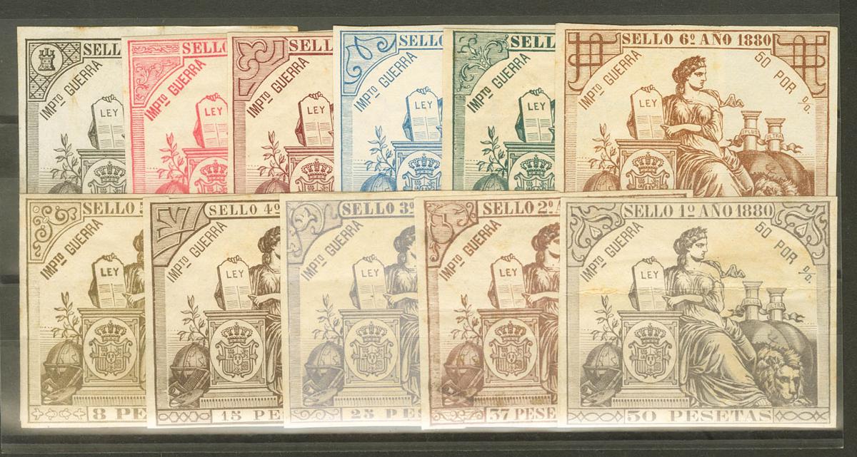 ★/(★)1880. Serie completa, once valores (conservación habitual). POLIZAS. BONITA. (Alemany 217/27)