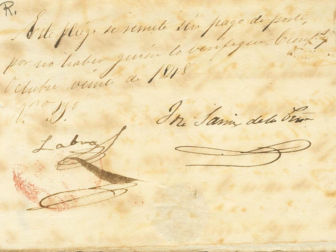 1848. CIENFUEGOS a LA HABANA (alguna erosión de tropicalización). Baeza CIENFUEGOS / ISLA DE CUBA, en rojo. MAGNIFICA Y RARA.
