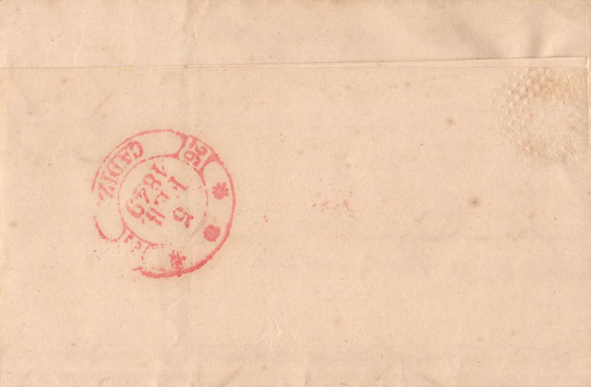 1849. SANTANDER a CADIZ. Baeza SANTANDR. / M. DE SANTR, en rojo. MAGNIFICA.