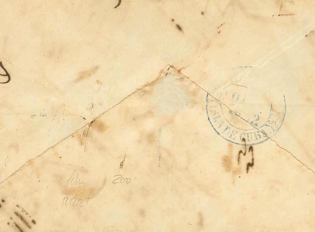1852. UNION DE REYES a LA HABANA. Baeza REYES / ISLA DE CUBA, en azul. MAGNIFICA Y RARISIMA.