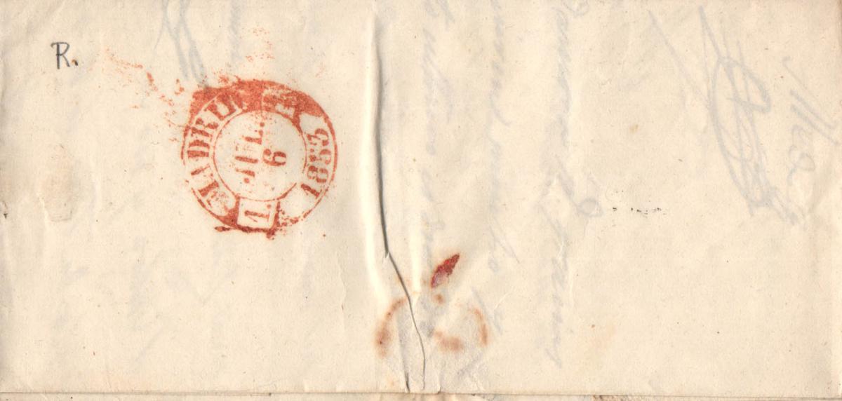17. 1853. 6 cuartos carmín. FUENSANTA DE MARTOS a MADRID. En el frente baeza MARTOS / ANDAL.A. MAGNIFICA.