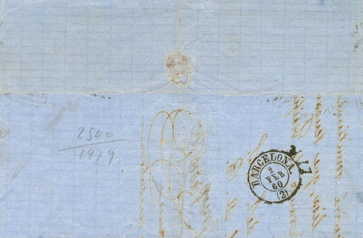 48. 1860. (1 de Febrero). 4 cuartos rojo. REUS (TARRAGONA) a BARCELONA. Matasello REUS / 1-FEB-60 / TARRAGONA. MAGNIFICA E INUSUAL CARTA CIRCULADA COINCIDIENDO CON EL PRIMER DIA DE USO DE LA SIGUIENTE EMISION Y DENTRO DEL PERIODO DE VALIDEZ MIXTO DE LAS DOS EMISIONES QUE SE ALARGA HASTA EL 15 DE FEBRERO.