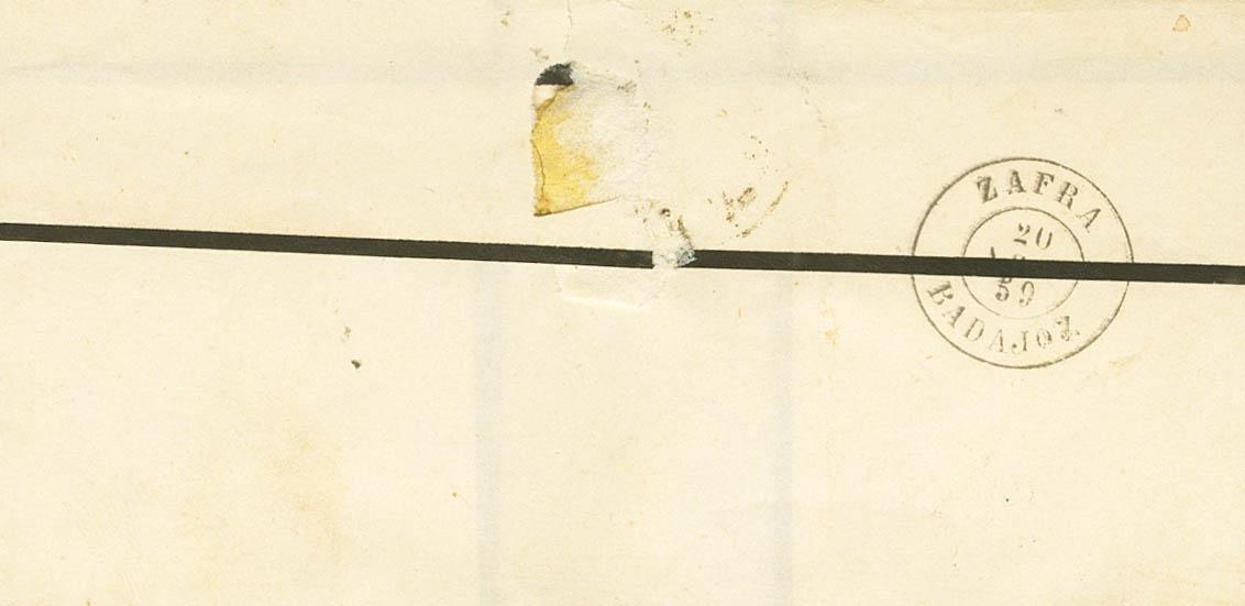 48. 1859. 4 cuartos rojo. BIENVENIDA a ZAFRA. Matasello BIENVENIDA / BADAJOZ (Tipo I). MAGNIFICA Y ESPECTACULAR ESTAMPACION.