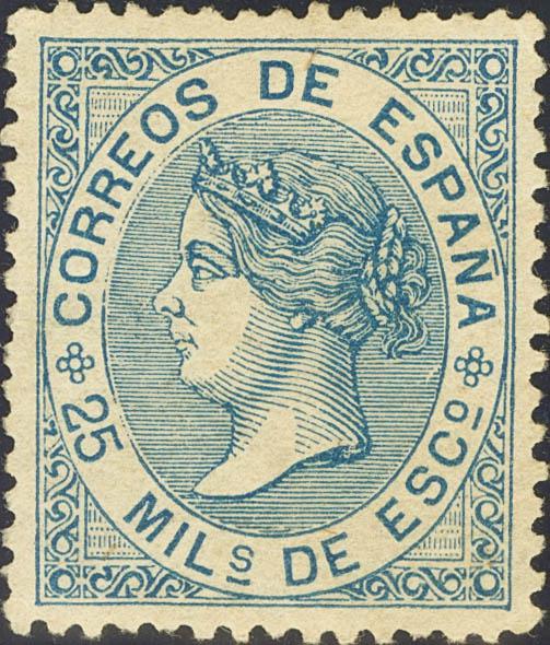 ★ 97. 1868. 25 cts azul. Color intenso y excelente centraje. MAGNIFICO.