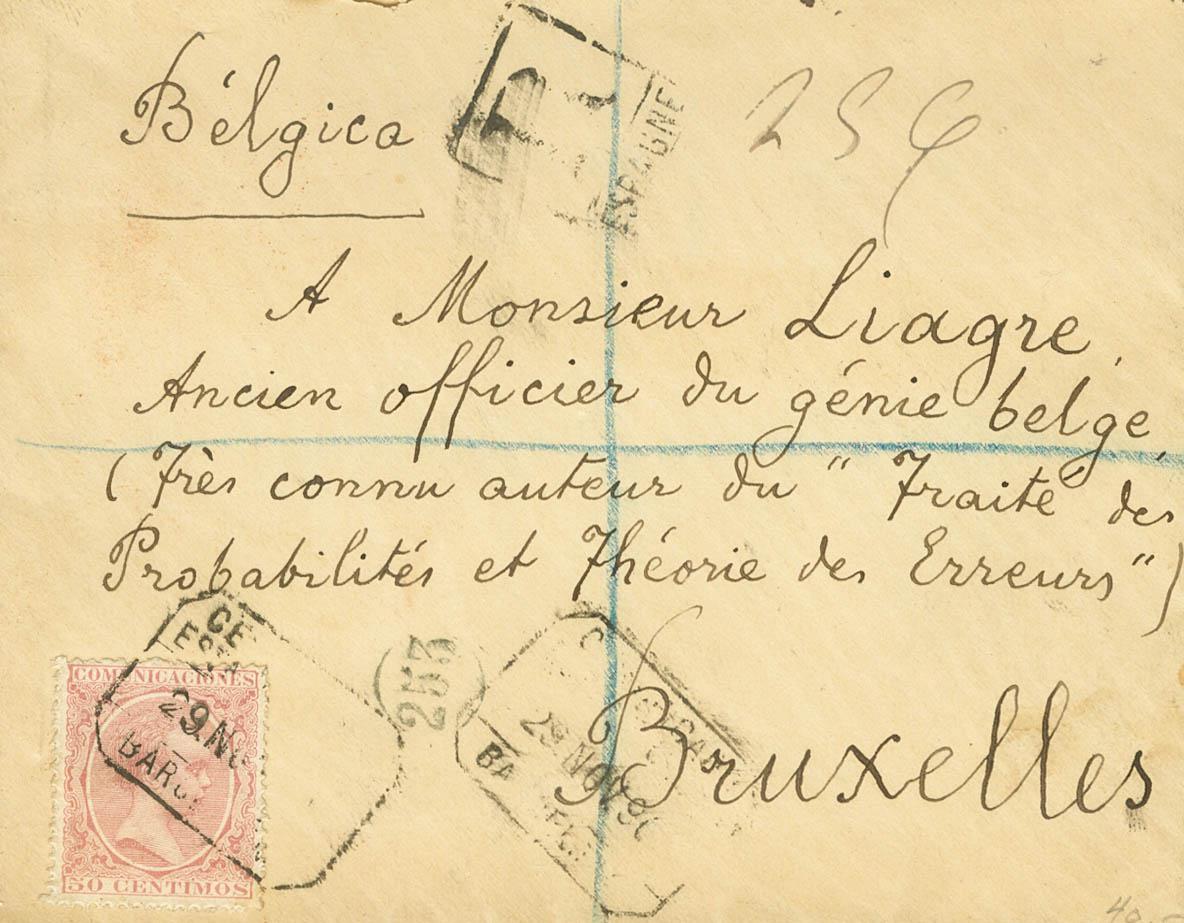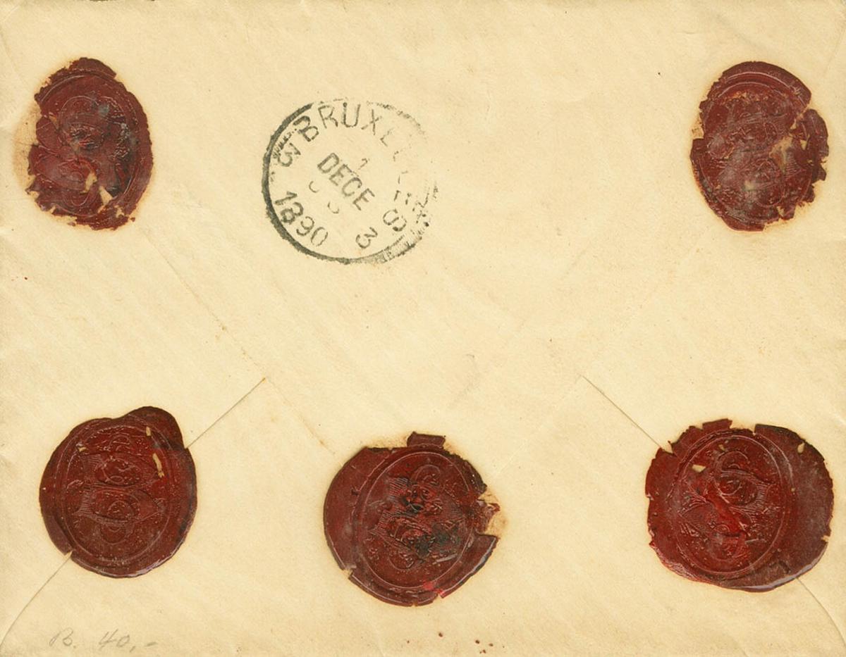 224. 1890. 50 cts rosa. Certificado de BARCELONA a BRUSELAS (BELGICA). Al dorso llegada. MAGNIFICA.