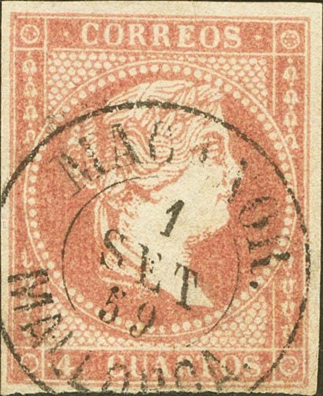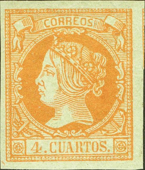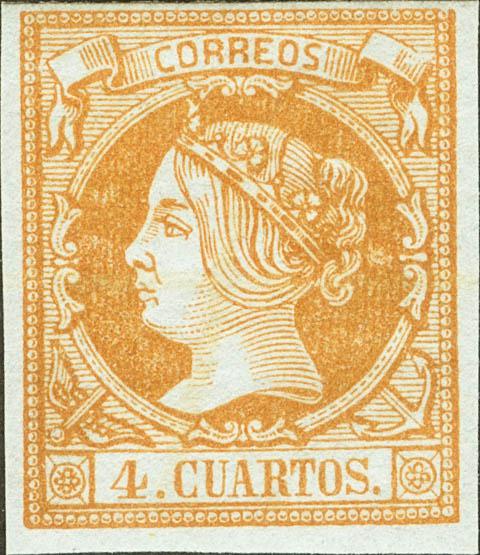 ★ 52. 1860. 4 cuartos naranja. Márgenes excepcionales. MAGNIFICO.