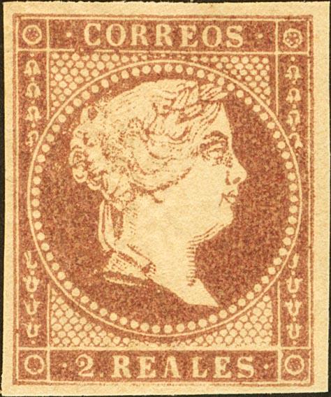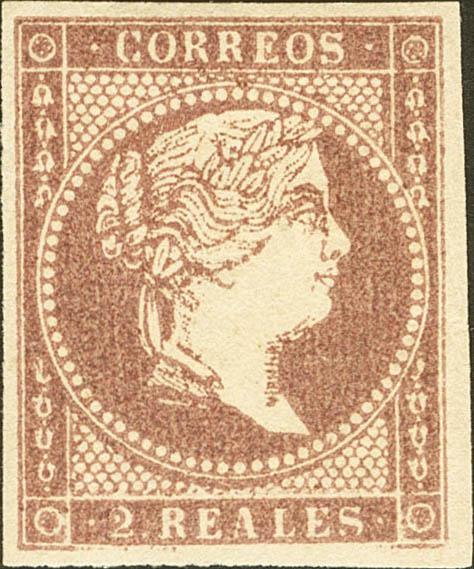 ★ 50. 1855. 2 reales violeta. MAGNIFICO.