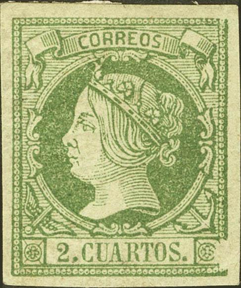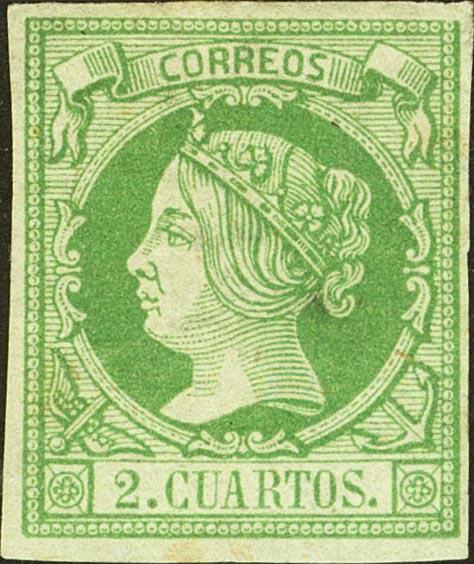 ★ 51. 1860. 2 cuartos verde (conservación habitual). MAGNIFICO.