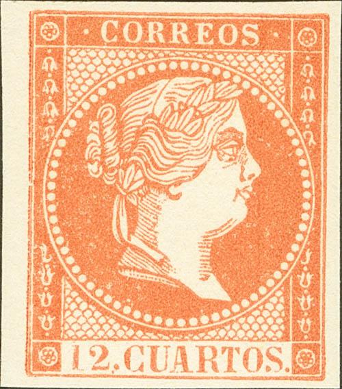 ★★ NE1A. 1855. 12 cuartos naranja NO EMITIDO. 2ª TIRADA. MAGNIFICO.
