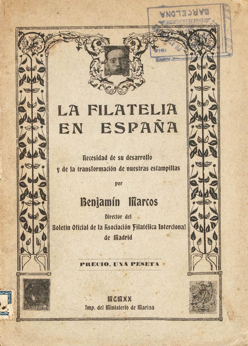 1919. LA FILATELIA EN ESPAÑA, NECESIDAD DE SU DESARROLLO Y DE LA TRANSFORMACION DE NUESTRAS ESTAMPILLAS. Benjamín Marcos. Asociación Filatélica Internacional de Madrid. Madrid, 1919.