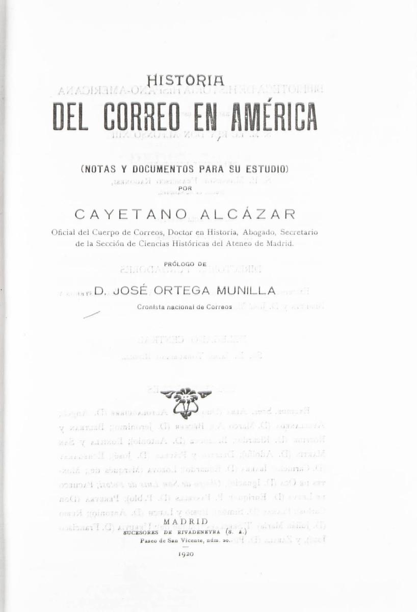 (1920ca). HISTORIA DEL CORREO EN AMERICA (facsímil-fotocopias preciosamente encuadernadas). Cayetano Alcázar. Biblioteca de Historia Hispano-Americana. Madrid, 1920ca.