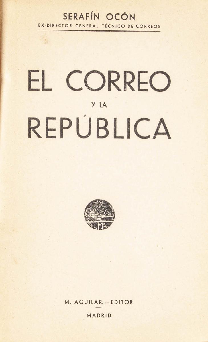 1934. EL CORREO Y LA REPUBLICA. Serafín Ocón. Edita M.Aguiar. Madrid, 1934.