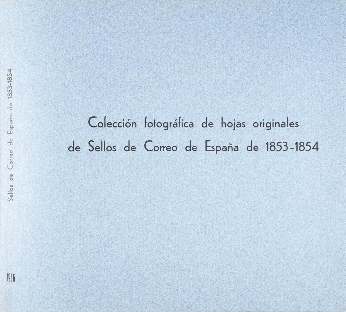 1936. COLECCION FOTOGRAFICA DE HOJAS ORIGINALES DE SELLOS DE CORREO DE ESPAÑA DE 1853-1854, ocho fotografías originales de los pliegos completos emitidos MUESTRA. Dirección Pedro Monge. Edita la Hormiga de Oro. Barcelona, 1936.