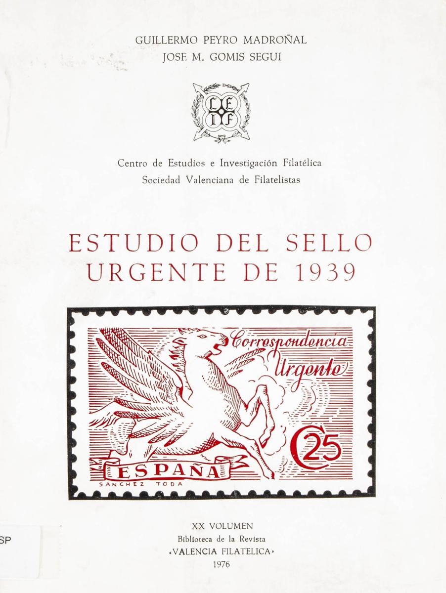 1976. ESTUDIO DEL SELLO URGENTE DE 1939. Guillermo Peyro Madroñal y José M.Gomis Seguí. Valencia Filatélica. Valencia, 1976.