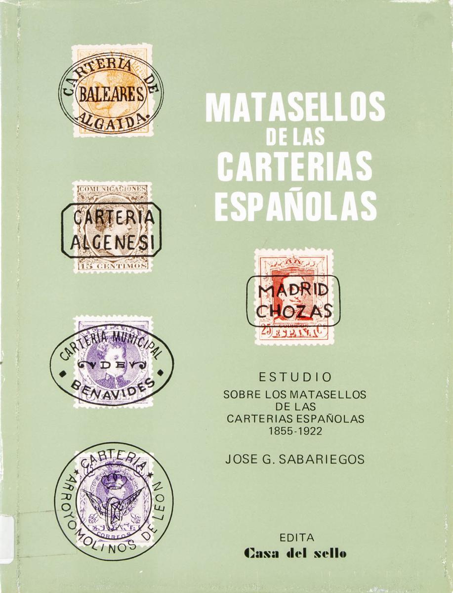 1980. ESTUDIO SOBRE LOS MATASELLOS DE LAS CARTERIAS ESPAÑOLAS 1855-1922. José Sabariegos. Casa del Sello. Madrid, 1980.