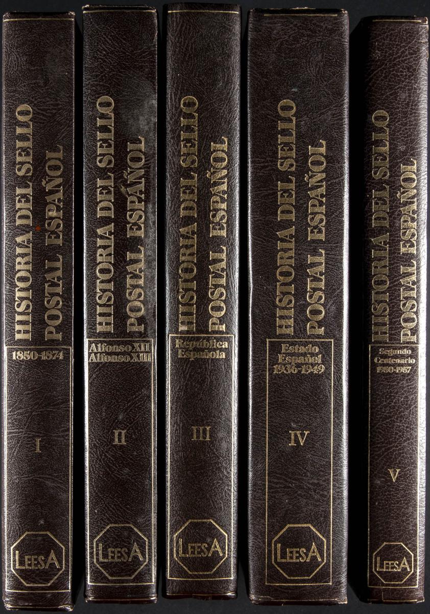 1982. HISTORIA DEL SELLO POSTAL ESPAÑOL, cinco tomos. J.L. Montalbán y Joaquín Cuevas Aller. Ediciones Leesa. Bilbao, 1982.