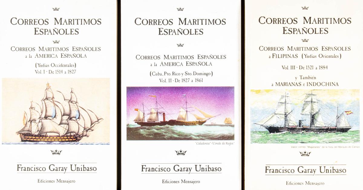1987. CORREOS MARITIMOS ESPAÑOLES, tres tomos. Francisco Garay Unibaso. Ediciones Mensajero. Bilbao, 1987.