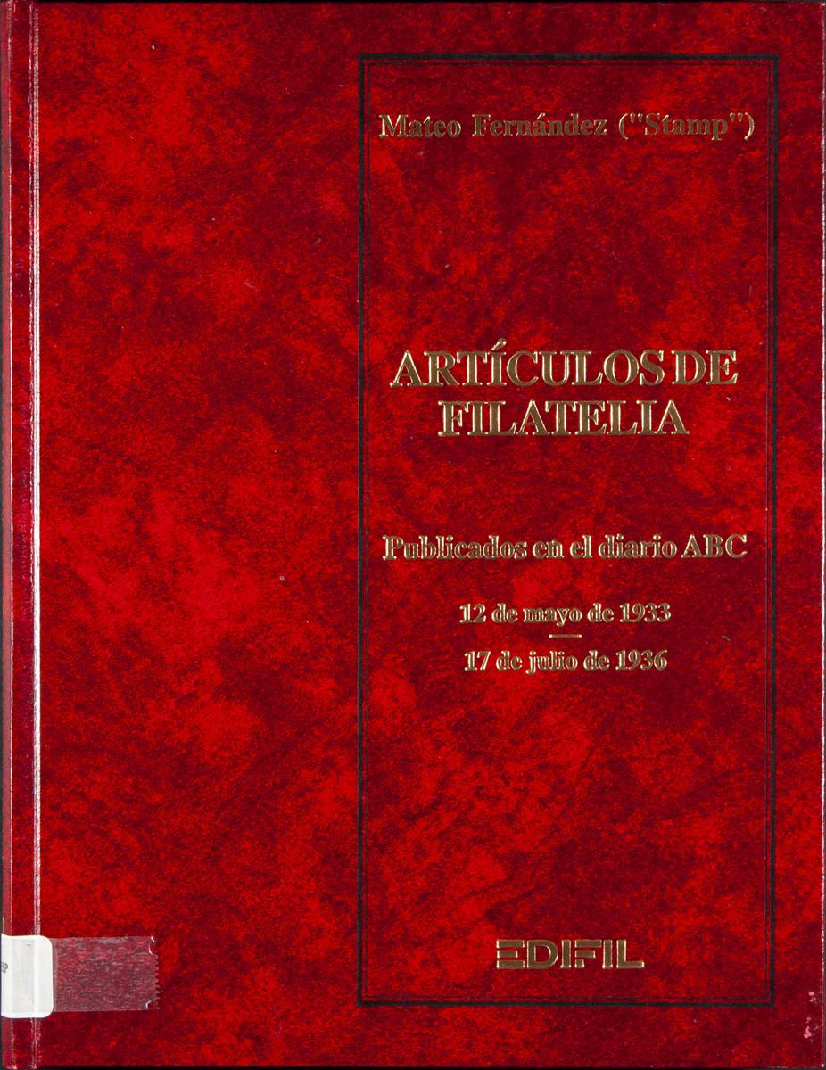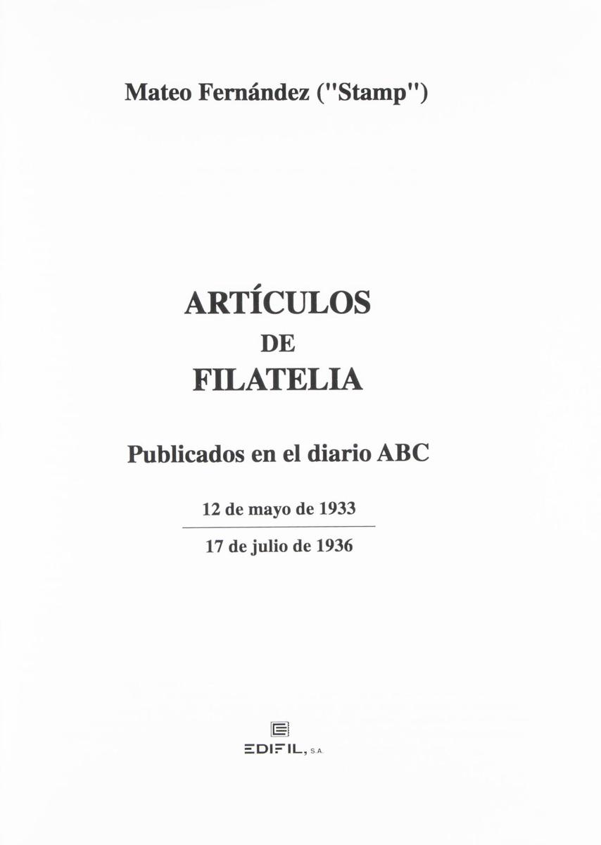 2000. ARTICULOS DE FILATELIA PUBLICADOS EN EL DIARIO ABC, 12 DE MAYO DE 1933-17 DE JULIO DE 1936. Recopilación de Mateo Fernández "Stamp". Edita Edifil. Madrid, 2000.