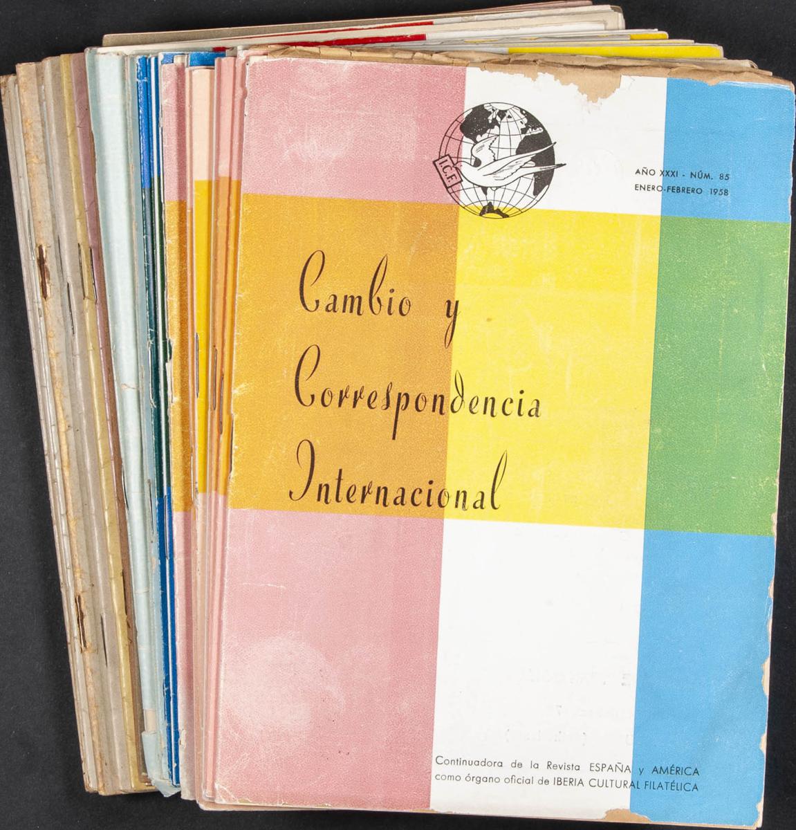 (1927ca). Conjunto de fascículos de ESPAÑA Y AMERICA de 1927 a 1935 (Nº2, 4 al 6, 9 al 11, 14, 22, 27 y 29 al 31) y de su sucesora CAMBIO Y CORRESPONDENCIA INTERNACIONAL publicados de 1958 a 1960 (Nº85 al 102), ambas publicadas por IBERIA CULTURAL FILATELICA. A EXAMINAR.