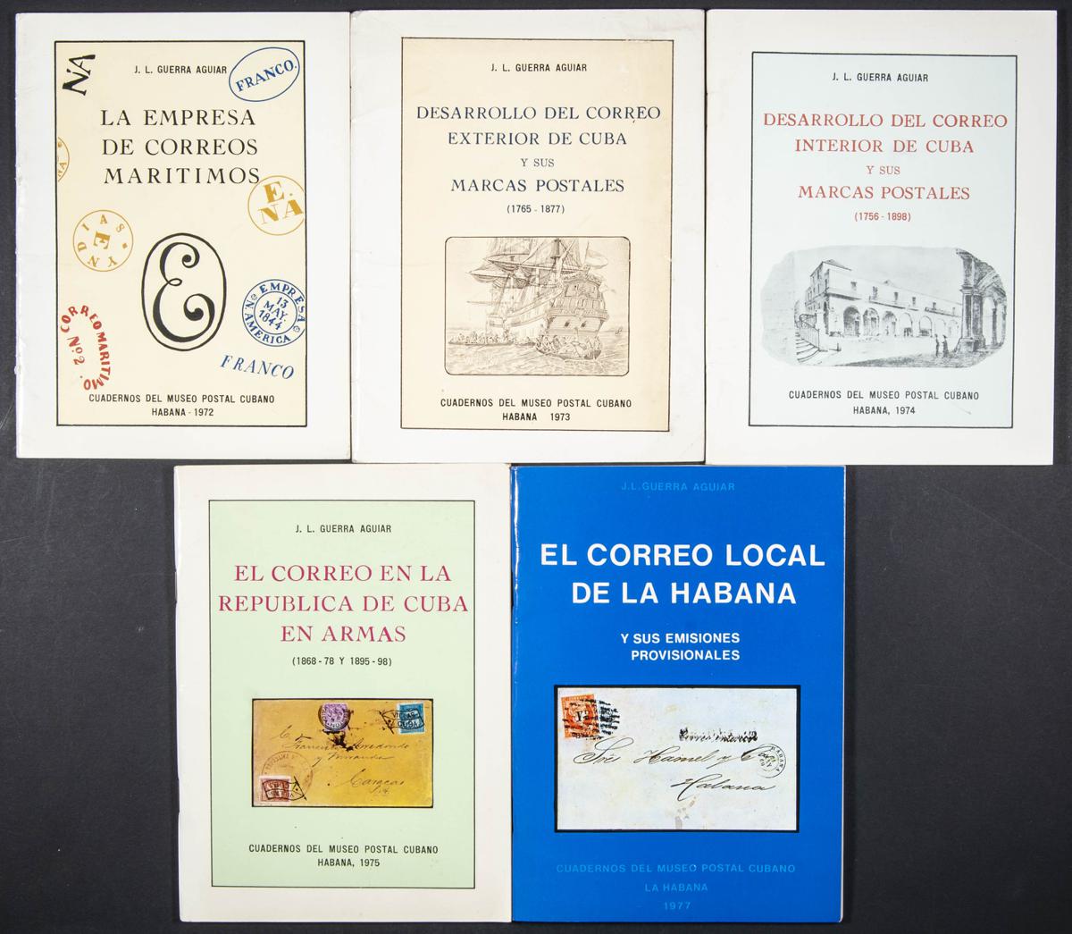 (1972ca). LA EMPRESA DE CORREOS MARITIMOS, DESARROLLO DEL CORREO EXTERIOR DE CUBA Y SUS MARCAS POSTALES (1765-1877), DESARROLLO DEL CORREO EXTERIOR DE CUBA Y SUS MARCAS POSTALES (1756-1898), EL CORREO EN LA REPUBLICA DE CUBA EN ARMAS Y EL CORREO LOCAL DE LA HABANA Y SUS EMISIONES PROVISIONALES. J.L. Guerra Aguiar. Cuadernos del Museo Postal Cubano. La Habana, 1972.
