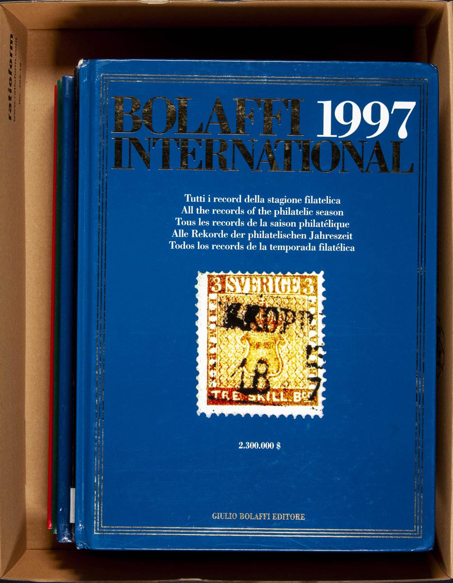 (1997ca). Seis libros BOLAFFI INTERNATIONAL TUTTI I RECORD DELLA STAGIONE FILATELICA de los años 1997 y 1999 al 2003. Giulio Bolaffi Editore. Turín, 1997-2003.