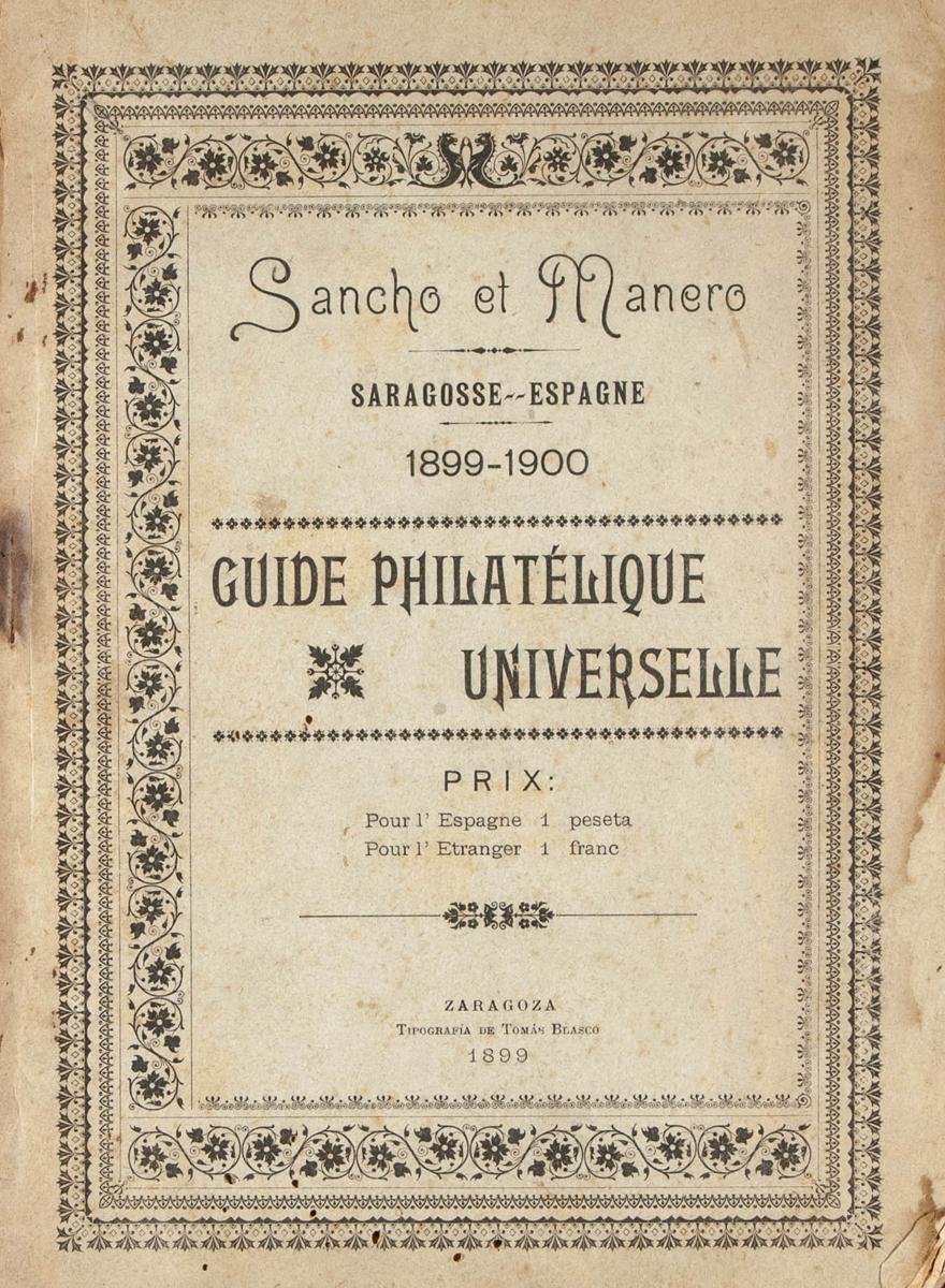 1899. GUIDE PHILATELIQUE UNIVERSELLE. Sancho et Manero. Zaragoza, 1899. (cubierta fatigada).