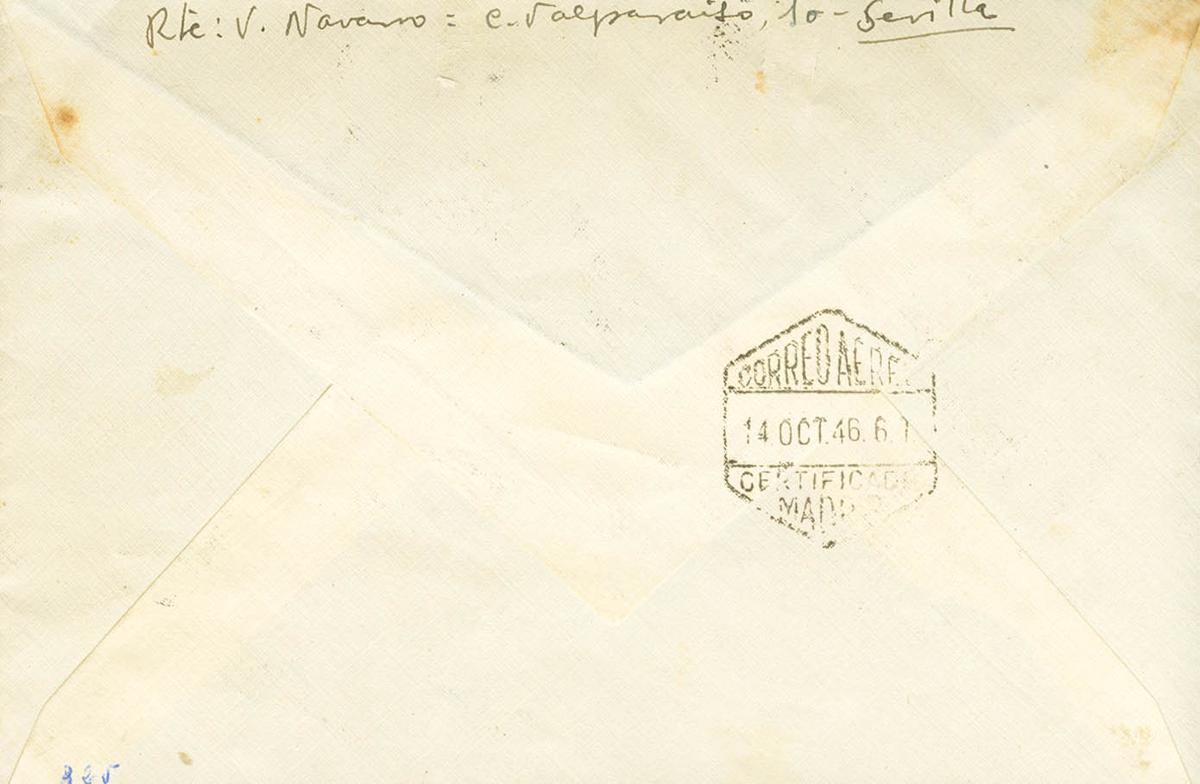1002/04. 1946. Serie completa. Certificado de SEVILLA a ALGIMIA DE ALFARA (VALENCIA). Matasello especial DIA DEL SELLO / SEVILLA y al dorso tránsito. MAGNIFICA. (esta carta aparece fotografiada en el catálogo especializado)