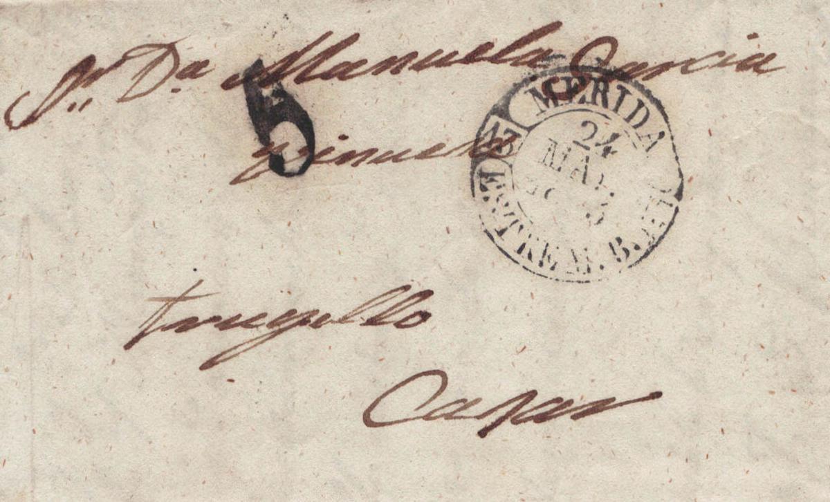 1845. MERIDA a EL CASAR (CACERES). Baeza MERIDA / ESTREM.B., en negro. MAGNIFICA.