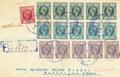 121/23(5), 124. 1904. 2 cts verde, cinco sellos, 3 cts verde azul, cinco sellos, 4 cts lila, cinco sellos y 5 cts carmín. Certificado de FERNANDO POO a KENZINGEN (ALEMANIA). Al dorso llegada. MAGNIFICA Y ESPECTACULAR FRANQUEO PARA COMPLETAR LA TARIFA DE 50 CTS.