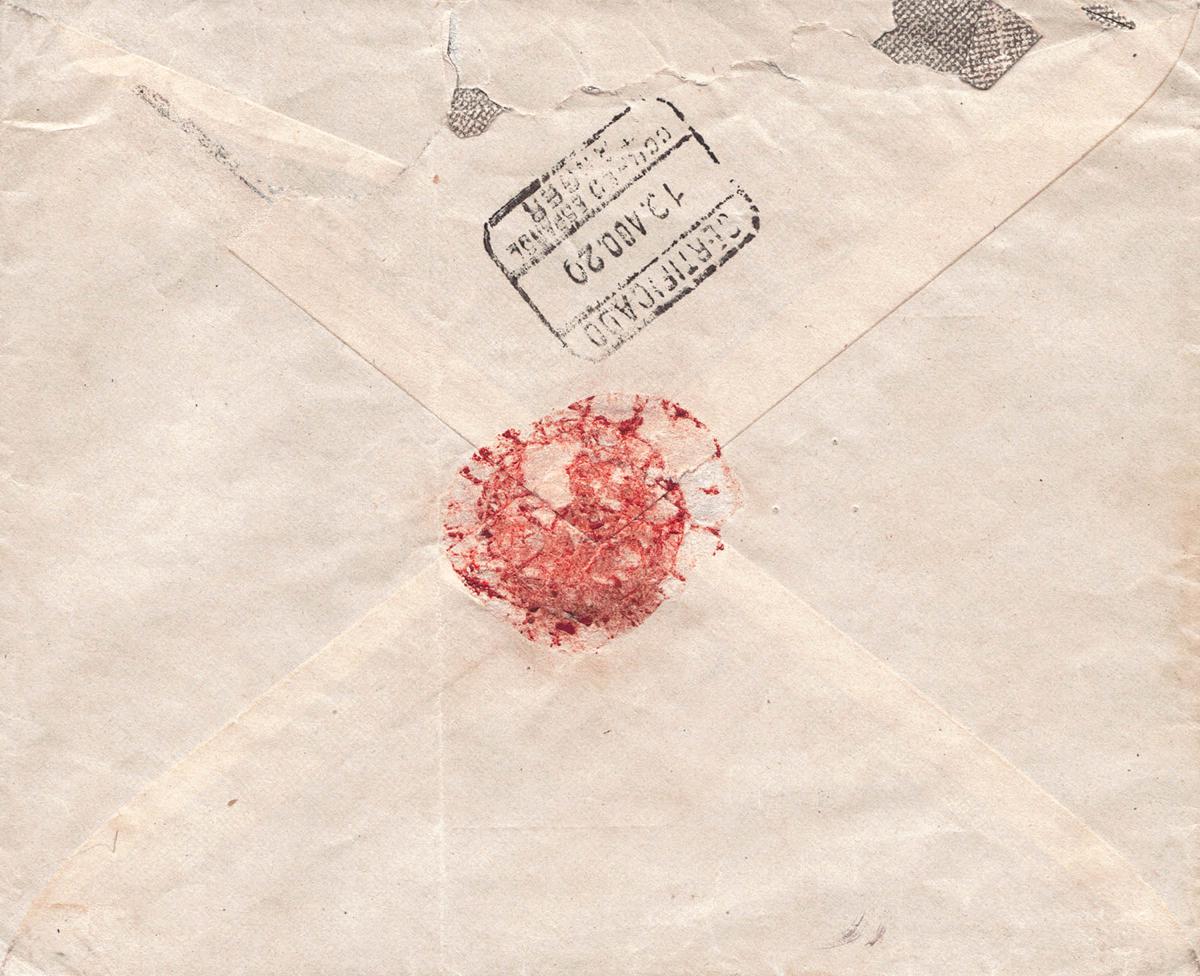 50, 68. 1920. 30 cts verde y medio sello de 5 cts sobre 5 pts azul. Certificado de TETUAN a TANGER. BONITA.