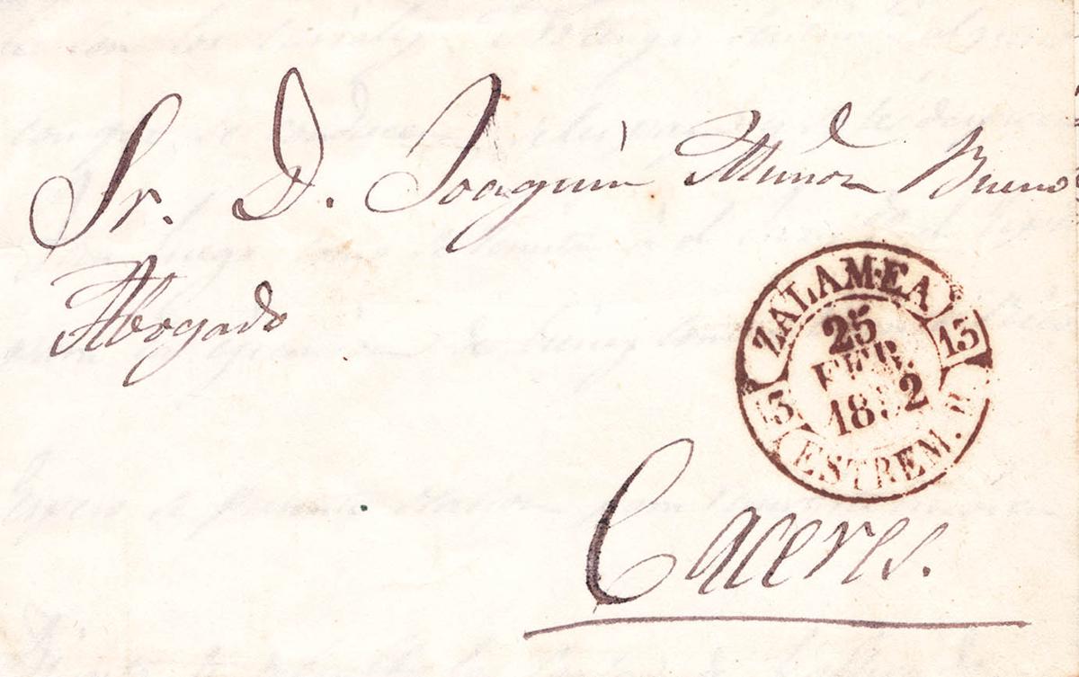1852. ZALAMEA DE LA SERENA a CACERES. Baeza ZALAMEA / ESTREM.B. MAGNIFICA.