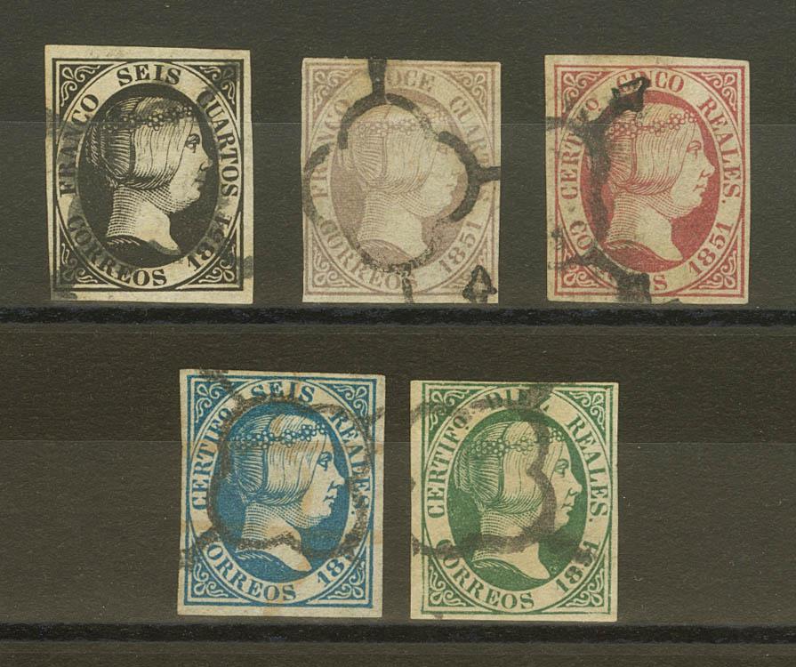6/11. 1851. Serie completa, a falta del 2 reales naranja. MAGNIFICA.