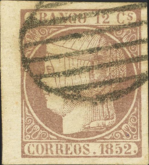 13F. 1852. 12 cuartos lila, borde de hoja. FALSO SPERATI, al dorso firma de Jean Sperati y sin la marca de la B.P.A. MAGNIFICO.