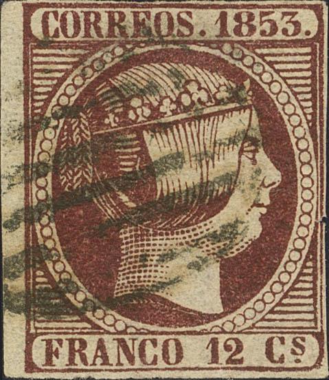 18F. 1853. 12 cuartos violeta. FALSO SPERATI, al dorso firma de Jean Sperati y sin la marca de la B.P.A. BONITO.