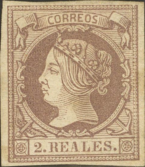 (★) 56. 1860. 2 reales lila (conservación habitual). MAGNIFICO.