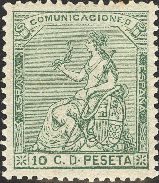 ★★ 133. 1873. 10 cts verde. Color intenso y bien centrado. PIEZA DE LUJO.