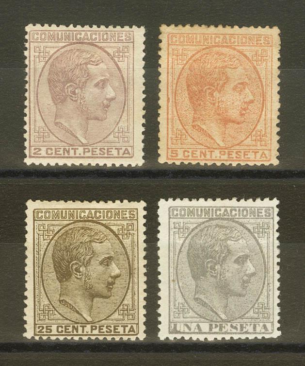 ★ 190, 191, 194, 197. 1878. 2 cts, 5 cts y 25 cts (centrajes aceptables) y 1 pts (pequeña claridad). MAGNIFICOS.