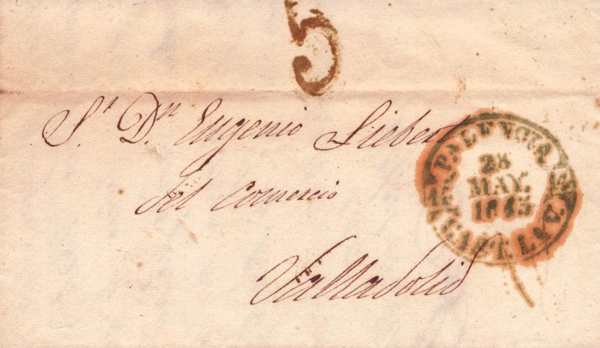 1845. PALENCIA a VALLADOLID. Baeza PALENCIA / CAST.LA V., en verde. MAGNIFICA.